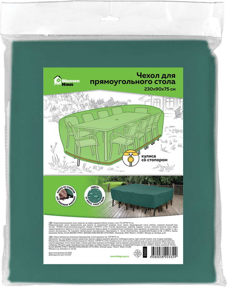Водонепроницаемый чехол-укрытие для прямоугольного стола. Предназначен для защиты садовой мебели, техники и мангалов от влаги, грязи и пыли.