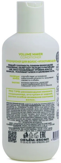 💳 Оплатить за товар можно при получении 🇰🇿 Есть бесплатная доставка по Казахстану от 1 дня 🎁 Копите бонусы с каждой покупки Volume Maker Conditioner кондиционер для волос «Уплотняющий» придаёт плотность тонким волосам без утяжеления, облегчает укладку и расчёсывание, восстанавливает уровень влаги в волосах, усиливает блеск и шелковистость. |