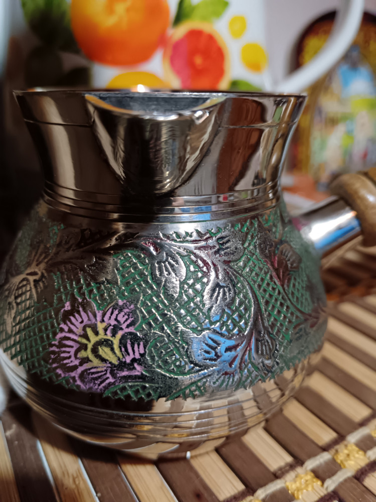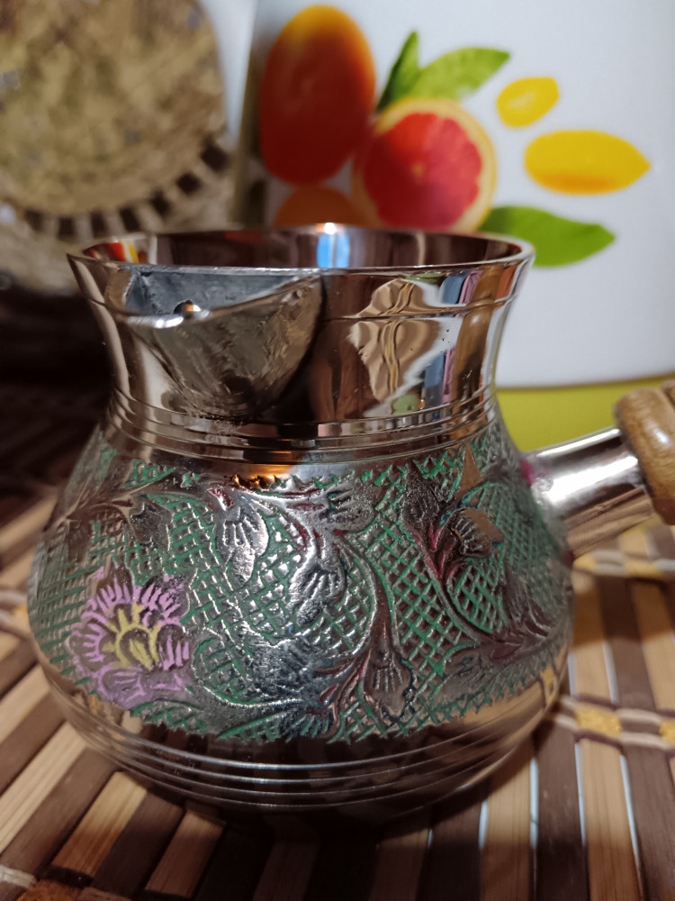 Красивая, тяжёлая, объёма достаточно для 2х чашек кофе Ручка сьемная