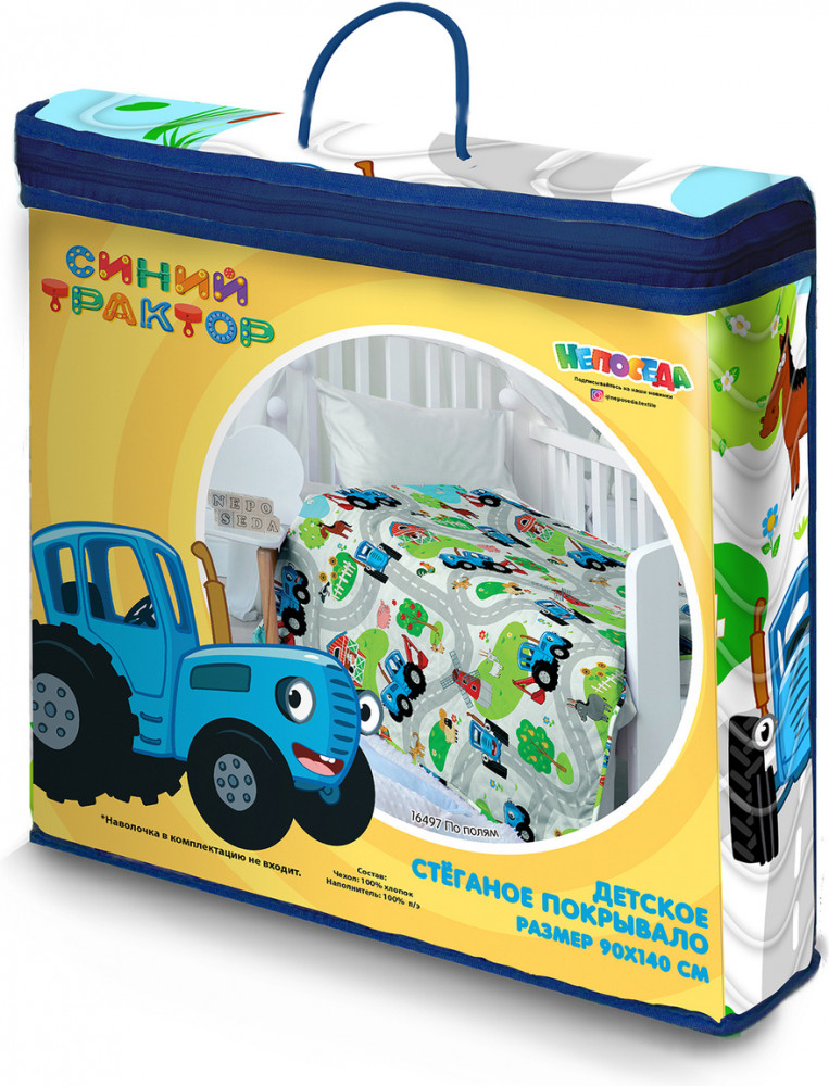 Непоседа Покрывало стеганое «Синий трактор»В данный момент этот товар отсутствует в продаже. Возможно, у нас найдется аналогичный или похожий товар здесь. Серия: Синий трактор «По полям, по полям Синий трактор едет к нам» — слова этой песенки отлично знают малыши и их родители. Развивающий мультик «Синий трактор» обожают дети младшего возраста. Он рассказывает о приключениях Синего трактора и каждый раз предлагает малышам угадать, кто спрятался в кузове спецмашины. На стеганом покрывале в детскую кроватку «Трактор и животные» мы видим всех многочисленных «гостей» кузовка трактора. Здесь и коровка, и ослик, и петушок, и свинка, и кошечка. Как же их много! Рассматривать этих пестрых и интересных животных перед сном — настоящее удовольствие для ребенка. Ткань покрывала выполнена из нежного и натурального хлопка. |