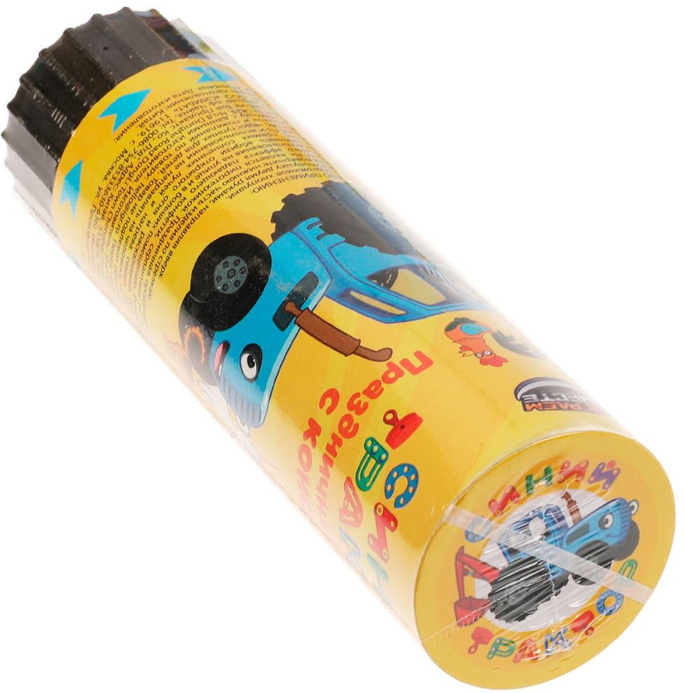 Пружинная хлопушка - прекрасное дополнение к любому празднику. На ней изображены персонажи популярного мультсериала «Синий трактор», что непременно обрадует его маленьких поклонников. Детям так же понравятся яркие конфетти. Активировать хлопушку можно, прокрутив её нижнюю часть по стрелочкам на корпусе хлопушки.