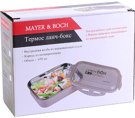 Mayer & Boch Контейнер пищевойВ данный момент этот товар отсутствует в продаже. Возможно, у нас найдется аналогичный или похожий товар здесь. Герметичный контейнер с крышкой предназначен для хранения готовых блюд. Внутри контейнера находится лоток из нержавеющей стали, разделенный на 2 одинаковые секции. При необходимости лоток можно вытащить и помыть. Нержавеющая сталь позволяет дольше удерживать тепло продуктов. Контейнер снабжен ушками-клапанами и силиконовым уплотнительным кольцом, которые позволяют надежно и герметично закрыть контейнер. Корпус контейнера изготовлен из полипропилена, благодаря чему его можно мыть в посудомоечной машине. Нельзя использовать в микроволновой печи. |