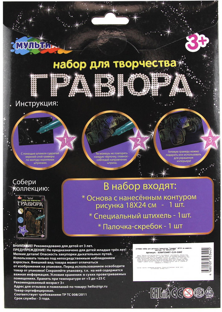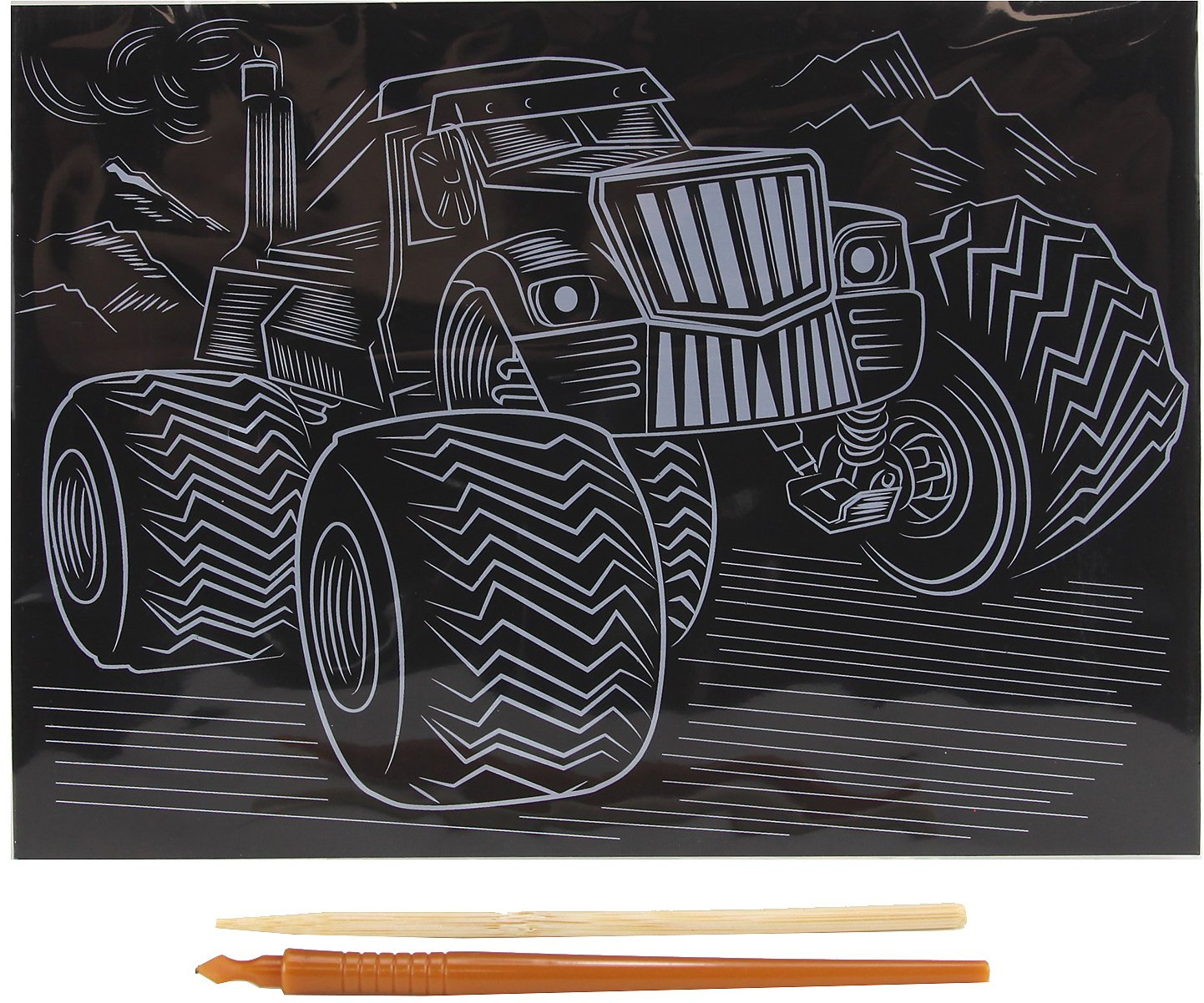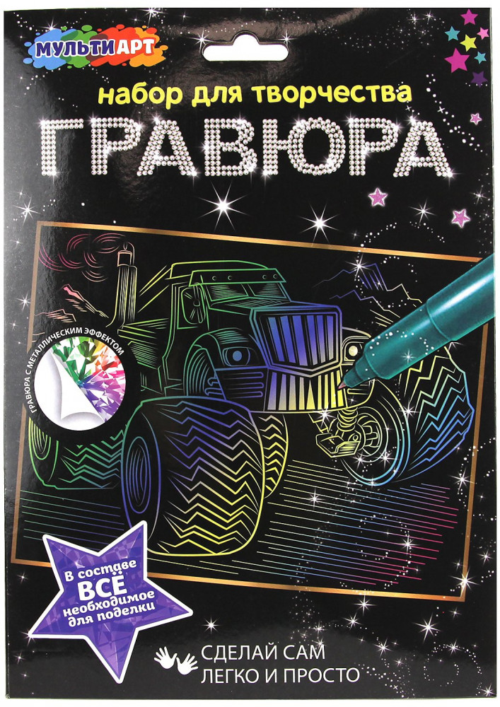 Набор для детского творчества МультиАрт Гравюра «Машинка» цветная.