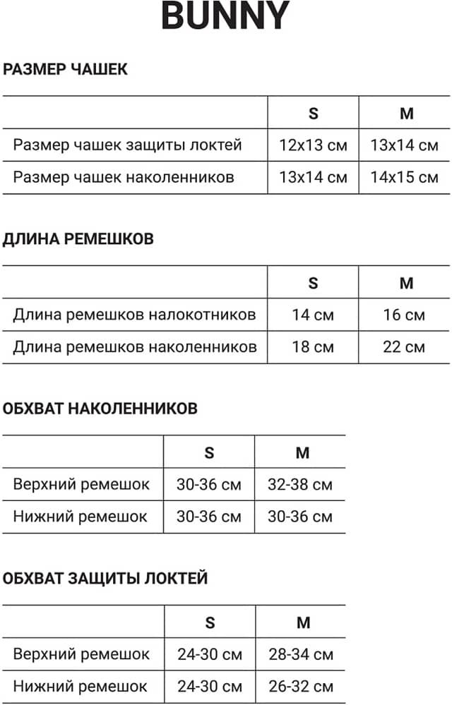 • обхват защиты локтей: верхний — 24-30 см, нижний — 24-30 см.