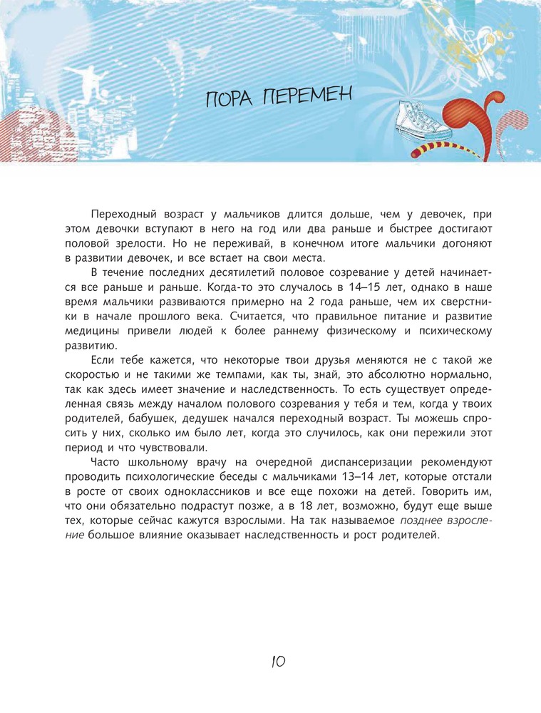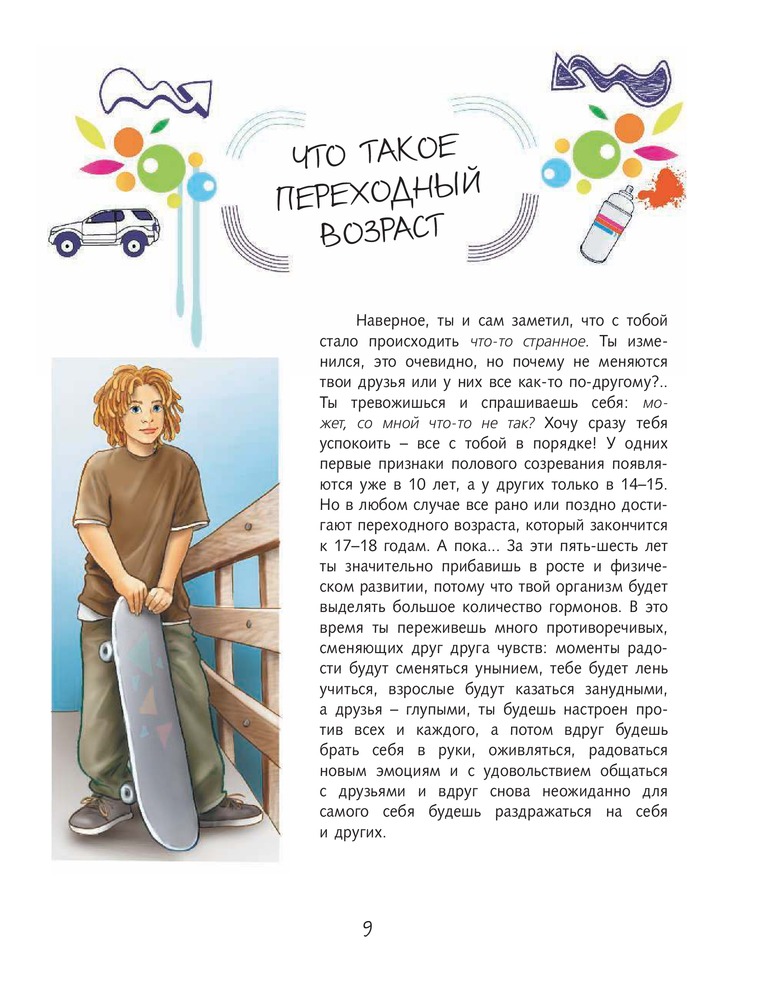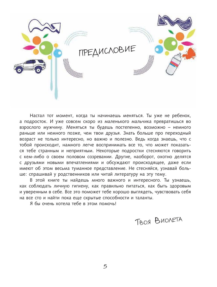 Хорошая книга, для мальчиков. В книге рассказывается обо всем: гигиена, половое созревание, здоровье, советы по уходу за собой. И даже советы как общаться с девушками) Подойдет для мальчиков от 12-13 лет.