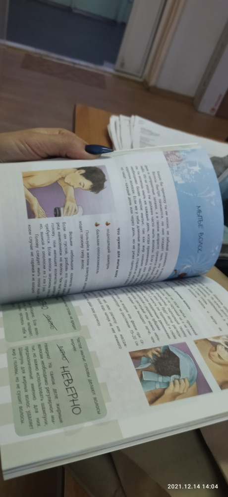 Книга хорошая, иллюстраций много. Я купила для сына 11 лет, но все таки пока не дам ему, первые темы пока считаю рановато ему. Как надевать презерватив не обязательно знать в 11 лет. Подожду немного. А вот темы по гигиене очень актуально.
