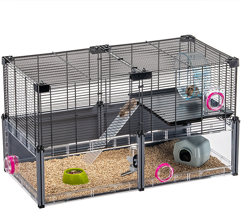 Клетки Multipla Hamster поставляются в разобранном виде и достаточно просты в сборке: просто соедините панели и пластиковые детали с помощью соответствующих защелок, соединителей и замков — использование специальных монтажных инструментов не требуется.