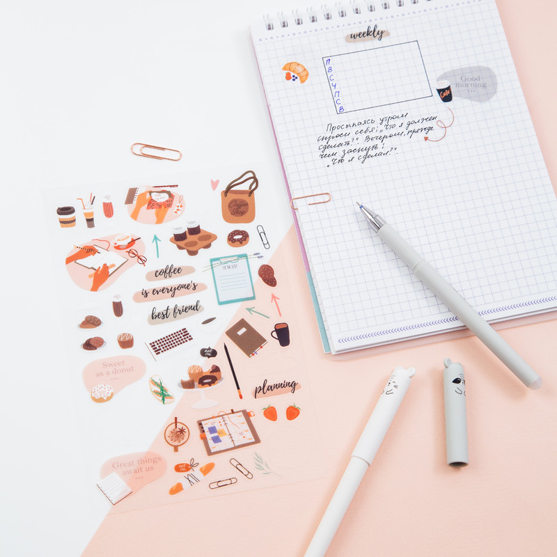 Meshu Наклейки «Coffee time»В данный момент этот товар отсутствует в продаже. Возможно, у нас найдется аналогичный или похожий товар здесь. Наклейки MESHU Coffee time из ПВХ идеально подходят для оформления записей, открыток, поделок, а также украшения канцтоваров, телефонов, ноутбуков, предметов интерьера. Набор состоит из 1 листа и включает в себя 43 наклейки. Яркие современные дизайны сделают творческий процесс увлекательным и подарят отличное настроение. |