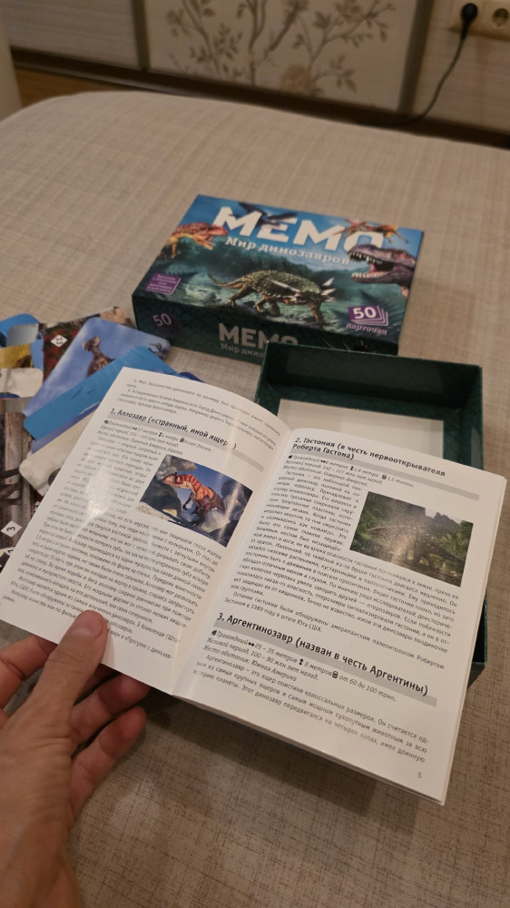 💳 Оплатить за товар можно при получении 🇰🇿 Есть бесплатная доставка по Казахстану от 1 дня 🎁 Копите бонусы с каждой покупки НПИ Мемо «Мир динозавров» очень простая: надо переворачивать закрытые карты по две штуки так, чтобы динозавры на картах совпали. Сначала не получается, но потом вы запоминаете, где какой динозавр лежит, и потихоньку коллекционируете парные карты. Набрали больше всех — победили. А фишка этой игры в другом: в очень детальных и красивых изображениях динозавров и буклете-энциклопедии с рассказом про каждого из них. |