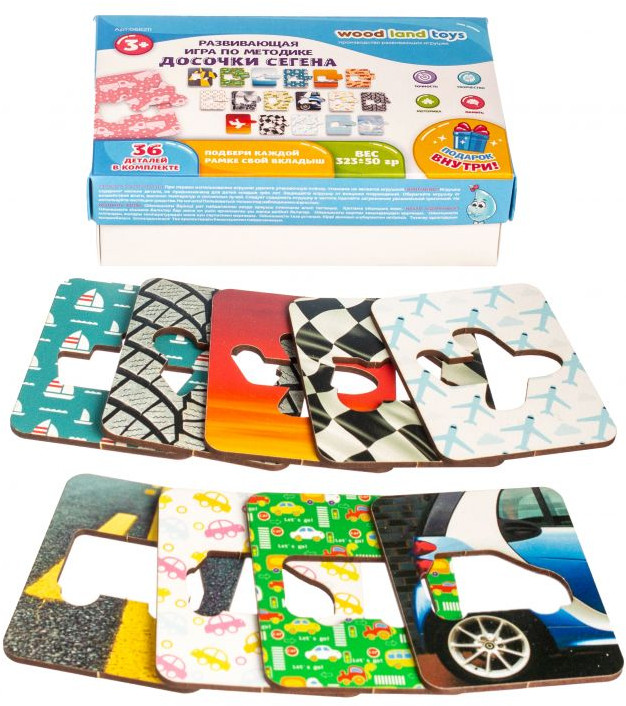 WoodLandToys Игра развивающая «Досочки Сегена.Транспорт»В данный момент этот товар отсутствует в продаже. Возможно, у нас найдется аналогичный или похожий товар здесь. Доски Сегена — всемирно известный развивающий игровой набор. Доски Сегена представляют собой красочные изображения на деревянных дощечках-рамках с вырезанными отверстиями разной формы и подходящие по контуру и цвету фигуры — вкладыши. Набор состоит из 18 геометрических — рамок и 18 вкладышей-фигур, которые хранятся в аккуратном деревянном ящике. Особенность занятий с Досками Сегена состоит в простоте этого процесса. Покажите ребенку доску с уложенными в них вкладышами, затем высыпьте их на стол, перемешайте и предложите вложить все фигуры на свои места. Этот занимательный процесс приносит неоценимую пользу: развивает мышление, память, внимание, воображение, зрительное и тактильное восприятие, формирует координацию движения и мелкую моторику, активизирует познавательную активность, любознательность, речь. Наборы «Досочки Сегена» подходят для исследовательской и коррекционной работы с детьми по Методике Сегена педагогам и психологам в образовательных учреждениях, а также для организации разнообразной игровой деятельности дома с родителями. |