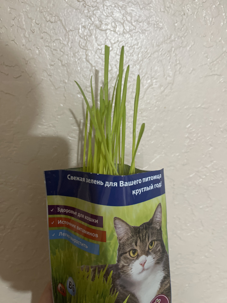 Купила 2 набора. Один кот уже съел. Будем сажать новую партию травки.
