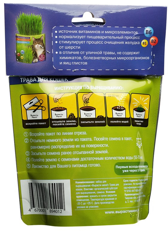 Вырасти меня! Набор для выращивания «Трава для кошек»+47 быстрая всхожесть кошка ест удобный набор простота выращивания