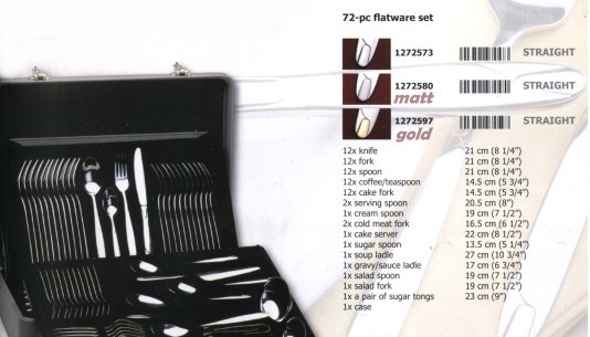Отзывы «Набор столовых приборов Straight Gold (72 предмета) в кейсе»