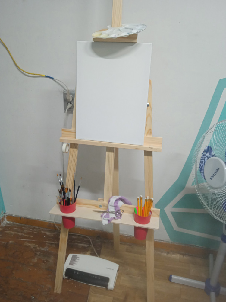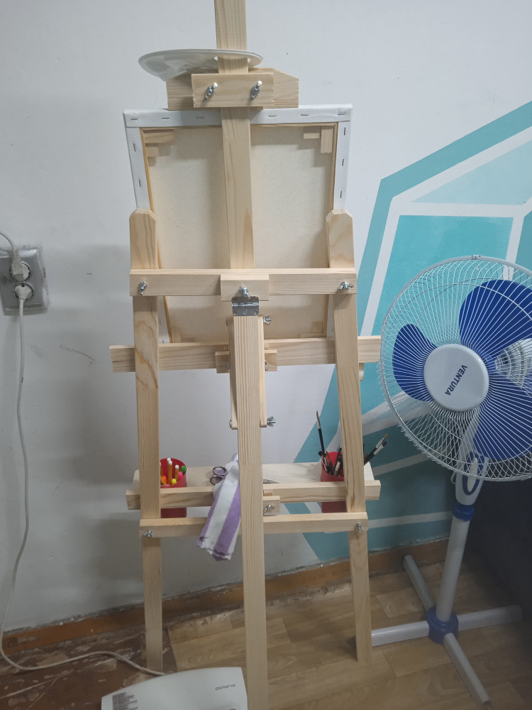 У мольберта максимальная устойчивость благодаря широкому основанию. Он складывается и не занимает много места при хранении.