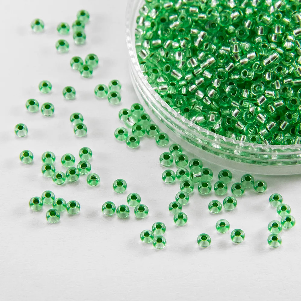 Бисер Presiosa с серебрянным прокрасом серцевины , ровнее , чем непрозрачный бисер этого же производителя и по качеству почти не уступает японскому Toho. Этот цвет очень красивый, смотрится как изумруд. Заказала еще.