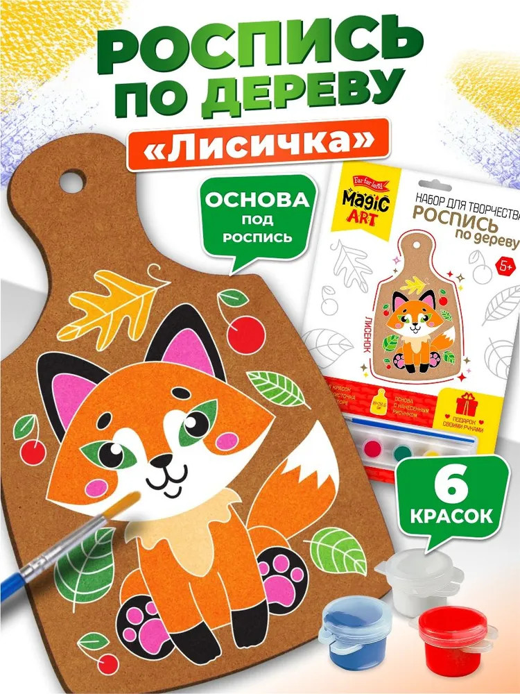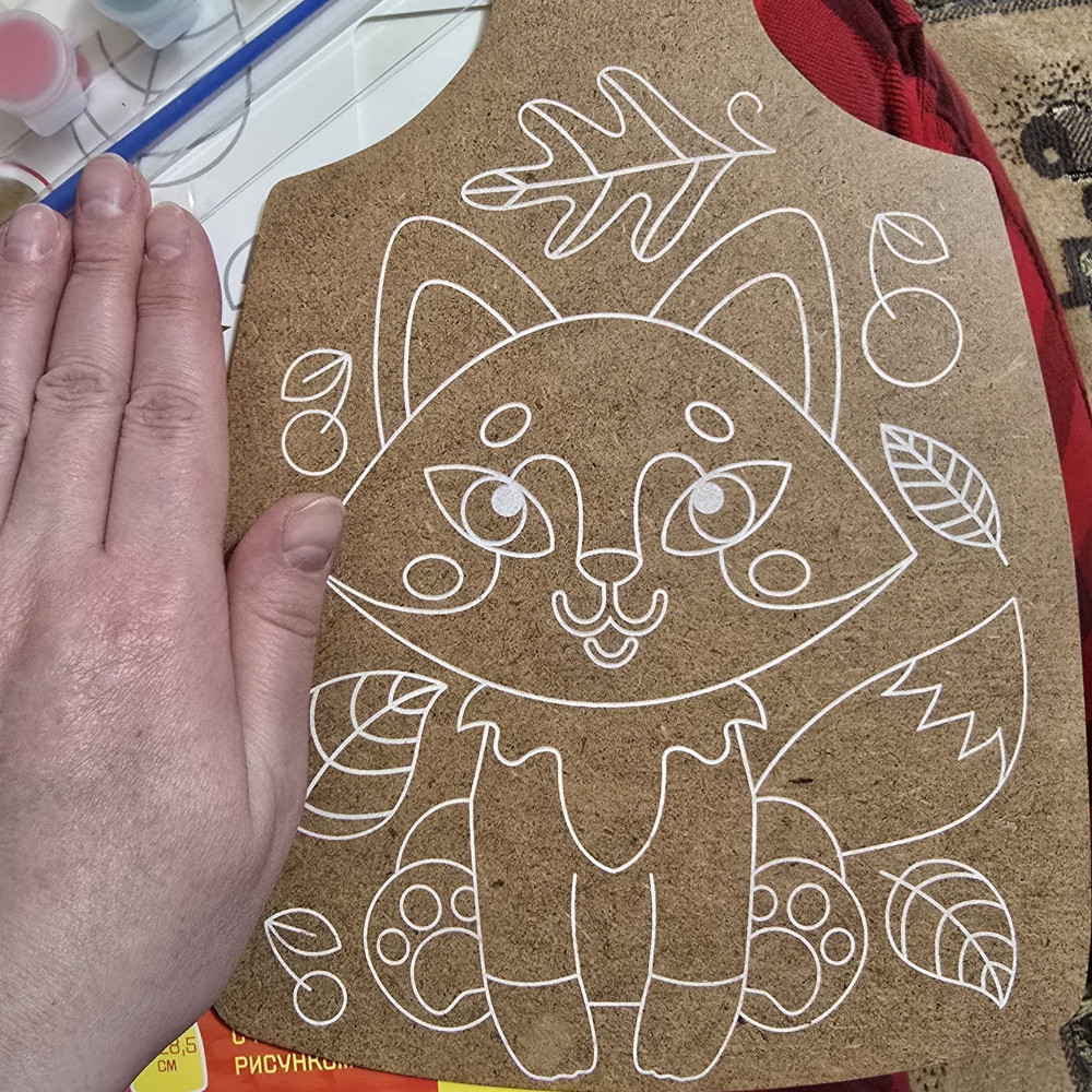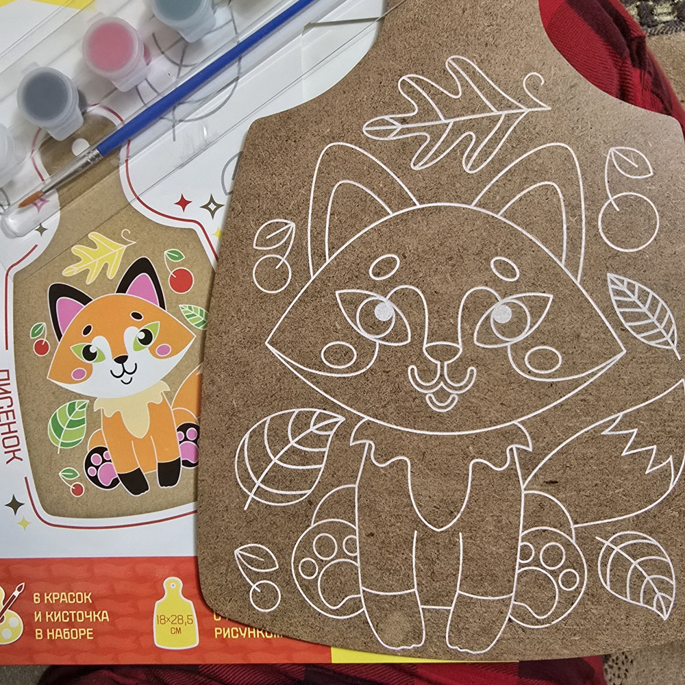 Понравилось разрисовывать доску, краски яркие, лисичка получилась красивой. Хороший подарок ребенку.
