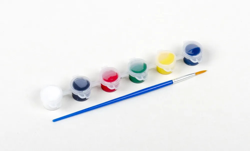 • краски (белого, чёрного, красного, зелёного, жёлтого, синего цветов) — 6 шт.;