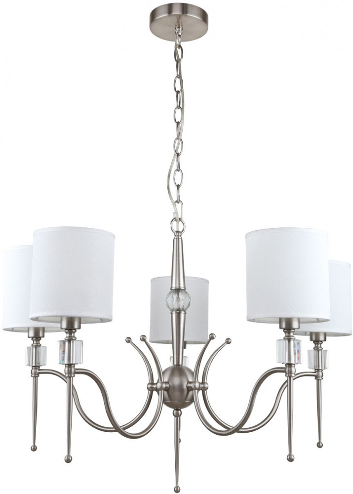 Модный цвет матового никеля привлекает к себе внимание. Лаконичный дизайн светильника универсален для классических и современных интерьеров. Текстильные абажуры цилиндрической формы с геометрическим принтом создают атмосферный свет. Термостойкий акрил и прострочка абажуров продлевают их срок службы. Подвесная люстра с эффектным прозрачным хрусталем придает стиль интерьеру. Заменяемые источники света удобны в эксплуатации. Возможность регулировать комфортную высоту.