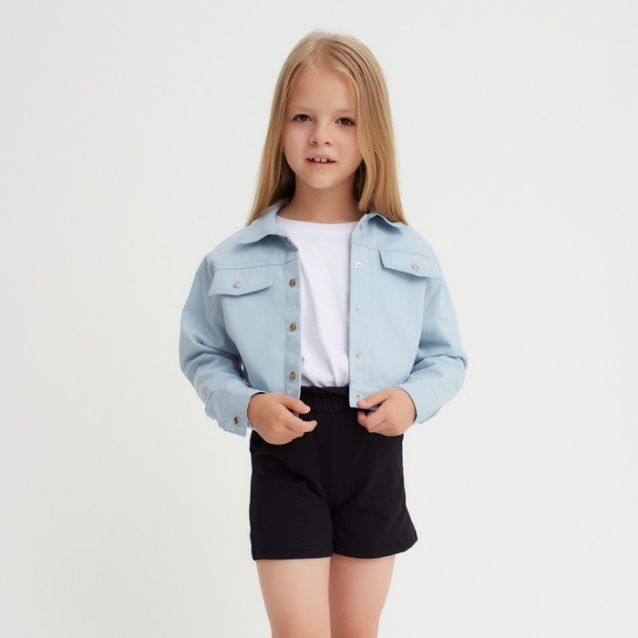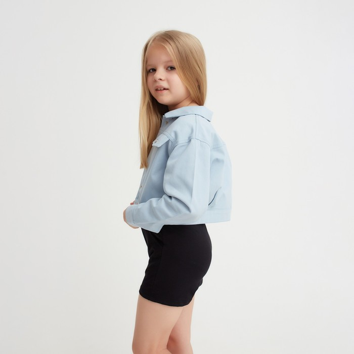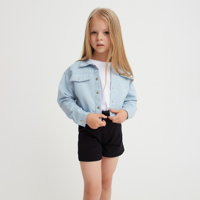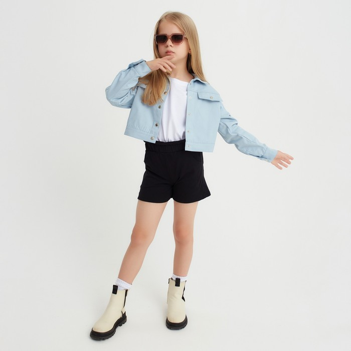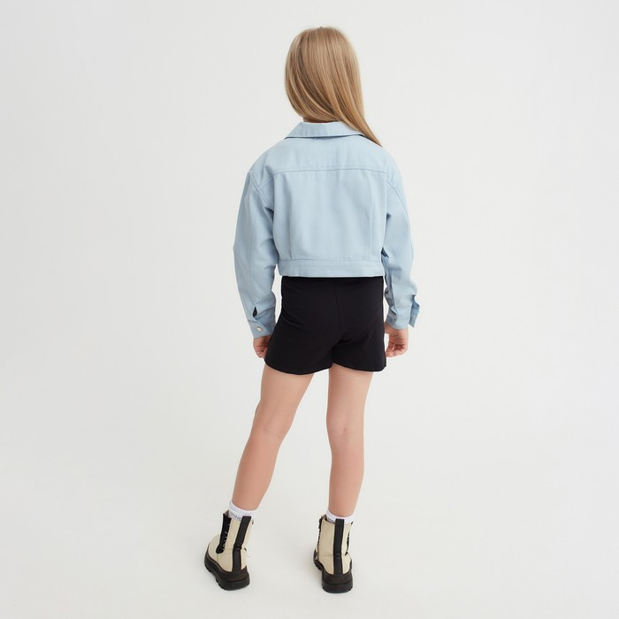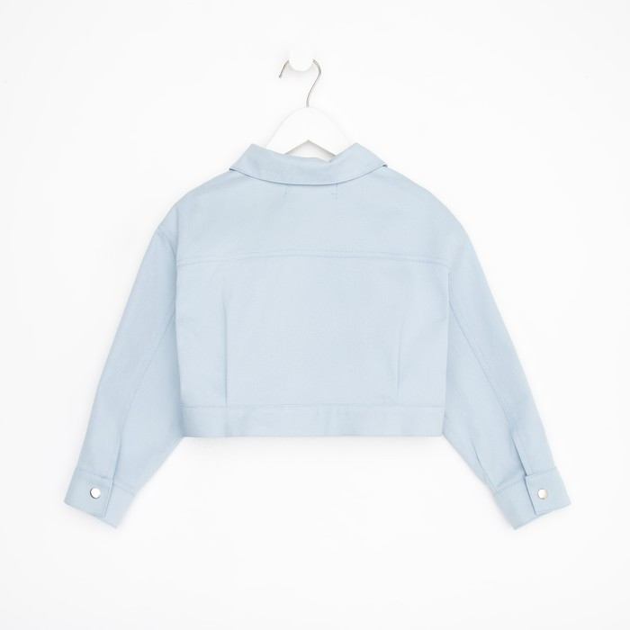 Рубашка для девочки джинсовая, укороченная, силуэт прямой. Застежка на кнопки. Стильная рубашка, отлично подойдет на каждый день!
