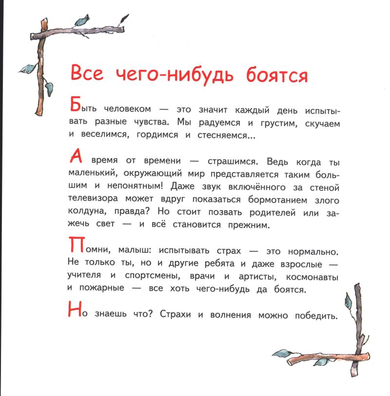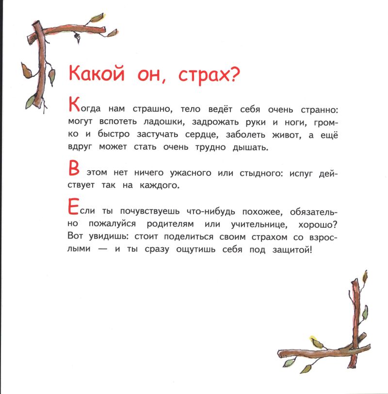 Купила эту книгу, так как у ребенка появился определенный страх. Он мне рассказал о нем. Думала книга поможет, но эффект оказался слабым. Из всего прочитанного для себя нашла всего 2-3 совета. Думаю, что книга в основном может помочь ребенку только рассказать о своем страхе, но не избавиться от него. Дальше нужна уже регулярная работа родителей.