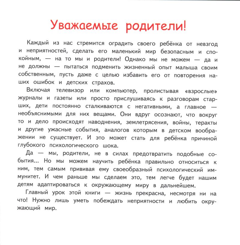 Когда случается плохое. Книга в помощь малышуВ данный момент этот товар отсутствует в продаже. Возможно, у нас найдется аналогичный или похожий товар здесь. Серия: Советы доброго Эльфа Мы, взрослые, часто не задумываемся о том, как плохие новости — природные катаклизмы, аварии, болезни родственников или друзей — словом, всё то, что заставляет нас переживать, влияет на наших детей. А ведь это оставляет глубокий след в их ранимых душах. |