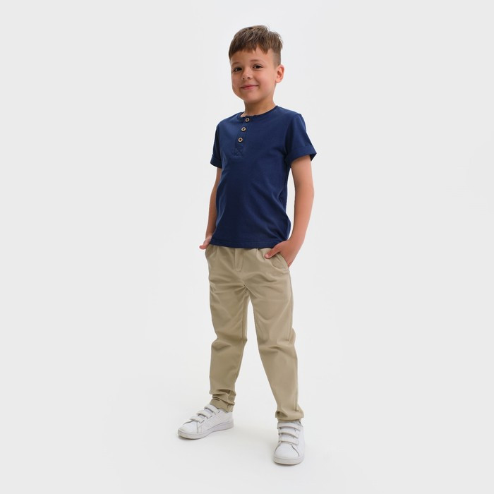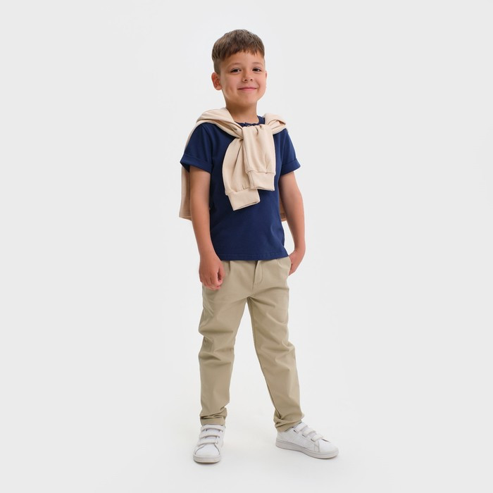 Стильные джинсовые брюки для мальчиков. Выполнены из хлопка. Силуэт прямой. В поясе — молния-застежка и пуговица. Универсальные джинсы!