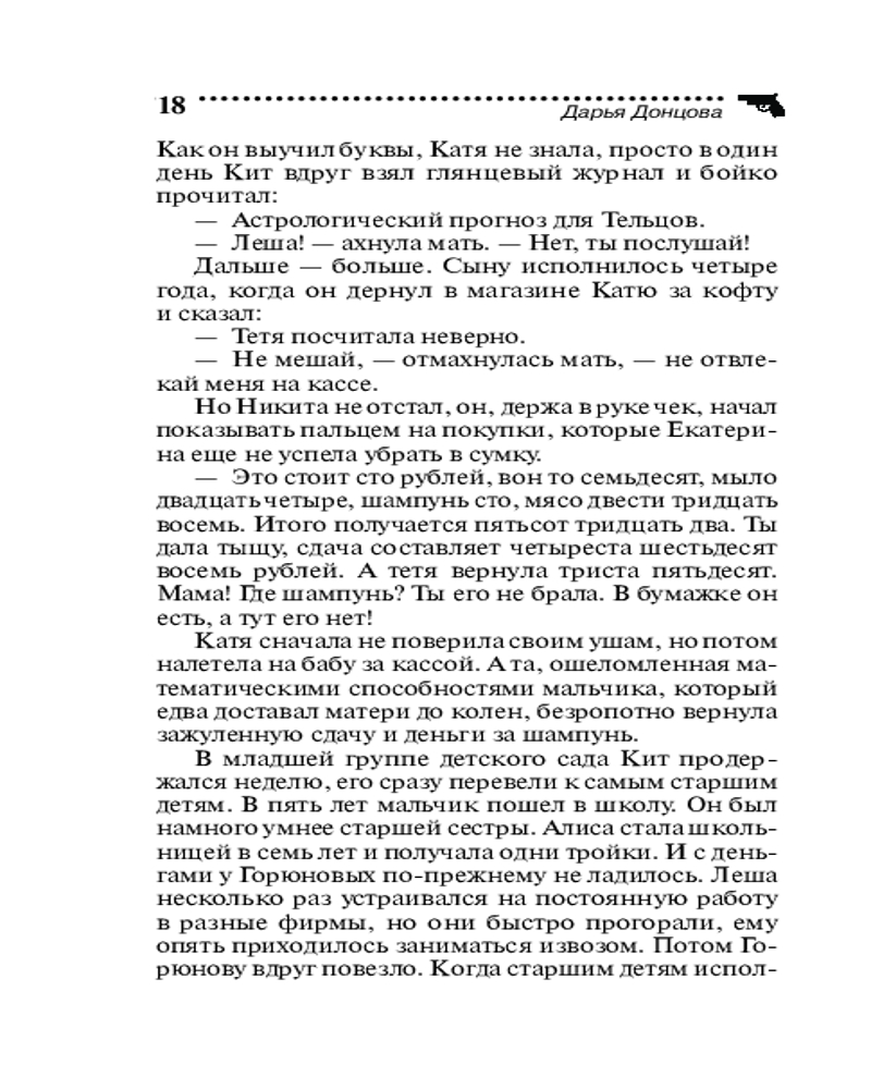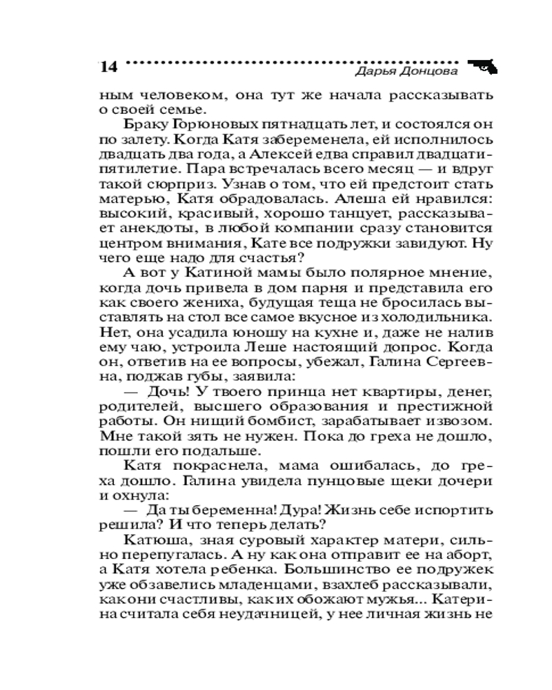 Дарья Аркадьевна Донцова (настоящее имя — Агриппина Аркадьевна Донцова) — российская писательница, член Союза писателей России, лауреат литературных премий. Родилась в Москве, в семье писателя Аркадия Васильева и режиссера Москонцерта Тамары Новацкой. После окончания факультета журналистики МГУ два года проработала переводчиком с французского в советском консульстве в Сирии. Затем — корреспондентом отдела информации и преподавателем немецкого и французского языков. В конце 1998 года... |