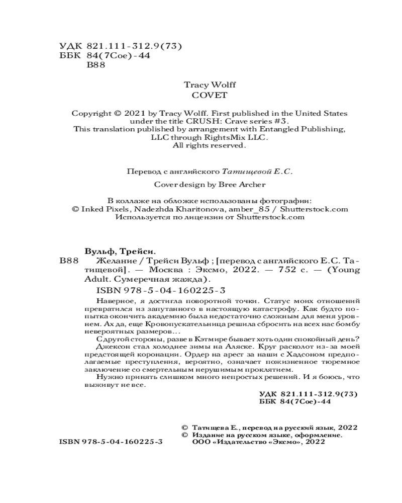 💳 Оплатить за товар можно при получении 🇰🇿 Есть бесплатная доставка по Казахстану от 1 дня 🎁 Копите бонусы с каждой покупки Серия: Young Adult. Сумеречная жажда «Желание» — третья часть серии, продолжение бестселлеров «Жажда» и «Искушение» Трейси Вульф. |
