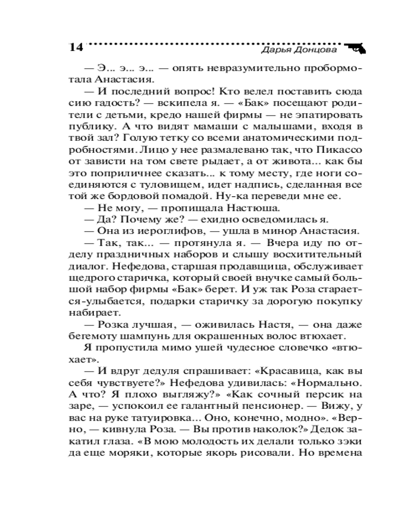 💳 Оплатить за товар можно при получении 🇰🇿 Есть бесплатная доставка по Казахстану от 1 дня 🎁 Копите бонусы с каждой покупки Серия: Иронический детектив Д. Донцовой (новая суперэконом-серия) (обложка) Истинное призвание Степаниды Козловой — помогать людям! Но разве могла она предположить, что, пообещав девочке-гимназистке найти ее маму, столкнется с чудовищным обманом и предательством... Успешная владелица риелторского агентства Вера Чернова попала в СИЗО по обвинению в убийстве. Якобы она отравила двух своих клиенток и украла деньги, отложенные теми на покупку квартир. |
