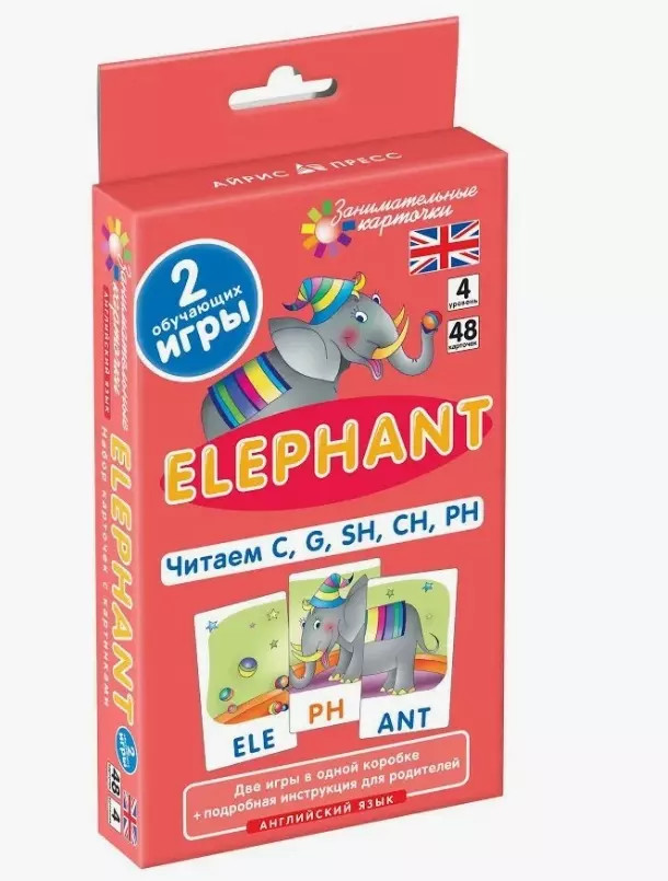 Английский язык. Слон (Elephant). Читаем C, G, SH, CH, PH. Уровень 4. Набор карточек-20%