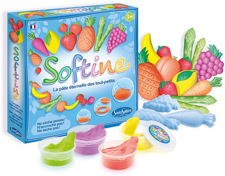 SentoSphere Набор для лепки «Фрукты и овощи»В данный момент этот товар отсутствует в продаже. Возможно, у нас найдется аналогичный или похожий товар здесь. Софтин — это масса для лепки, которая никогда не высыхает, не прилипает и не окрашивает руки и поверхности. Эта идеальная масса для лепки подходит для маленьких детей. Играя с ним, малыши тренируют мелкую моторику и развивают фантазию, создавая животных, птиц, фрукты и овощи и многое другое с помощью формочек «для печенья», поставляемых в комплекте. Подходит для детей от 3 лет. |