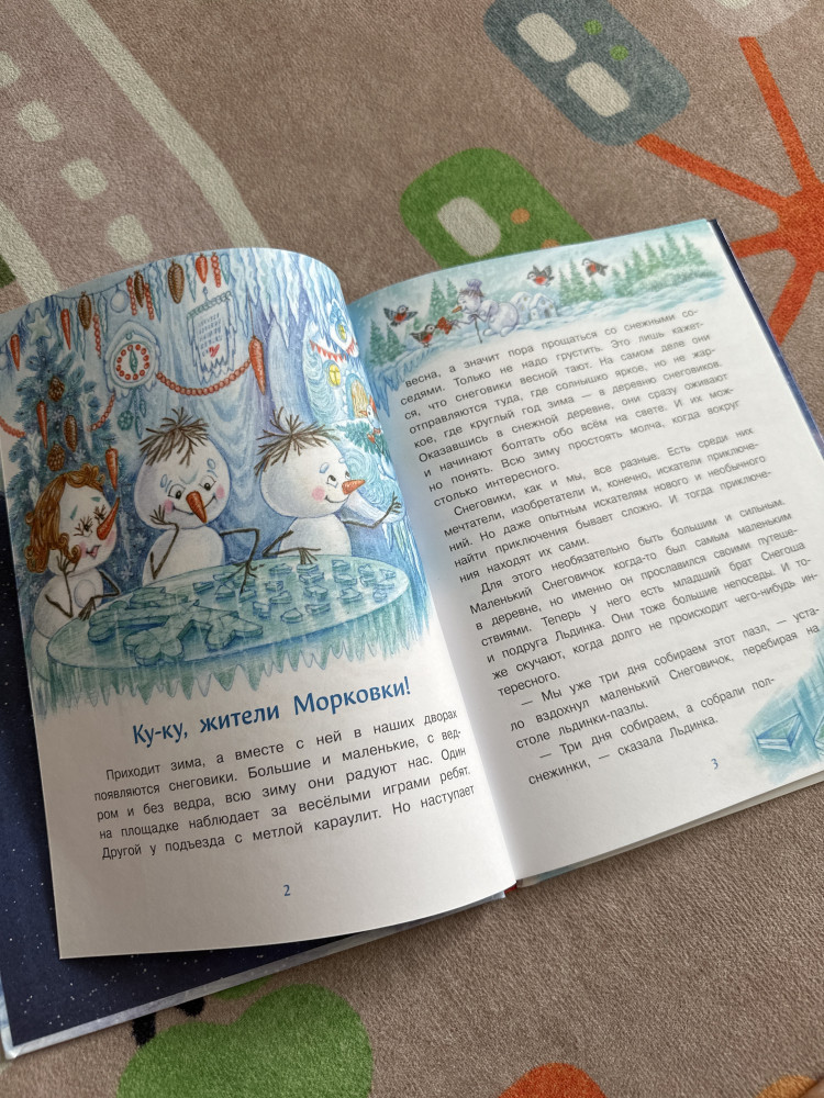 Сыну 5 лет, очень любит слушать истории о Маленьком Снеговичке. Шикарные иллюстрации , очень легко читается на одном дыхании. У нас есть сборник из 4х сказок, эту докупили в дополнение