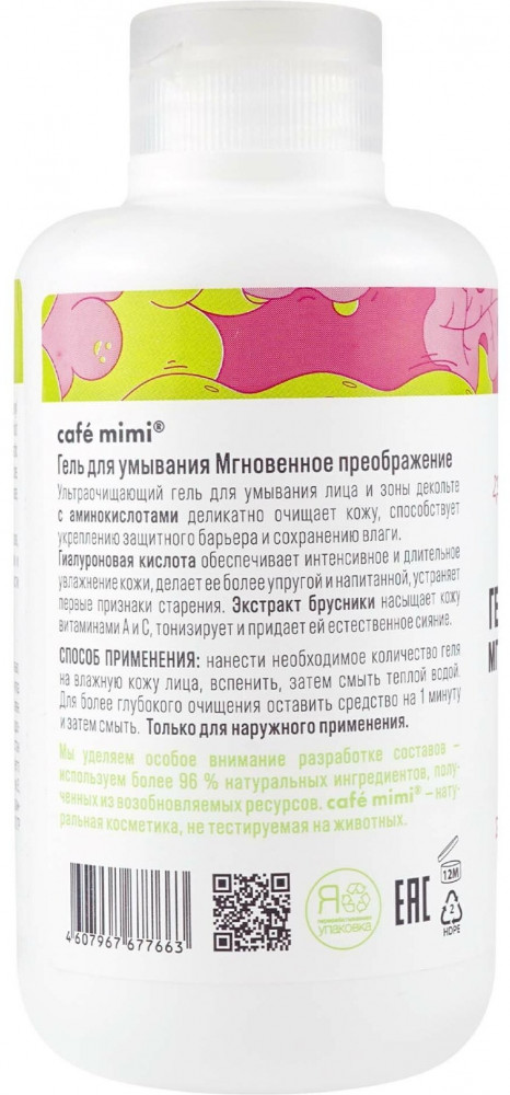 Cafe mimi Гель для умывания «Мгновенное преображение»+57 не сушит запах не очищает