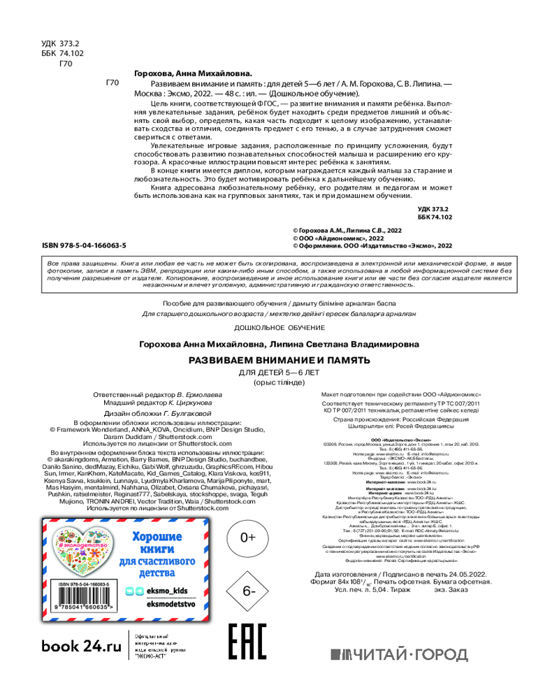 💳 Оплатить за товар можно при получении 🇰🇿 Есть бесплатная доставка по Казахстану от 1 дня 🎁 Копите бонусы с каждой покупки Благодаря пособию, соответствующему ФГОС, ребёнок сможет потренировать зрительную и слуховую память, развить внимание, научится сосредотачиваться на выполнении поставленной задачи. Это не скучный учебник, а, скорее, занимательная игра, в которую дошкольник будет с удовольствием играть вместе с вами. Он без труда будет находить сходства и отличия, лишний предмет в ряду, часть от целого, соединять предмет с его тенью, а в случае необходимости сможет заглянуть в ответы в конце книги. Весёлые упражнения и красочные иллюстрации помогут сделать процесс обучения привлекательным для ребёнка. Закончив выполнять задания, дошкольник получит заслуженную награду — диплом за успехи, которая повысит его самооценку. |