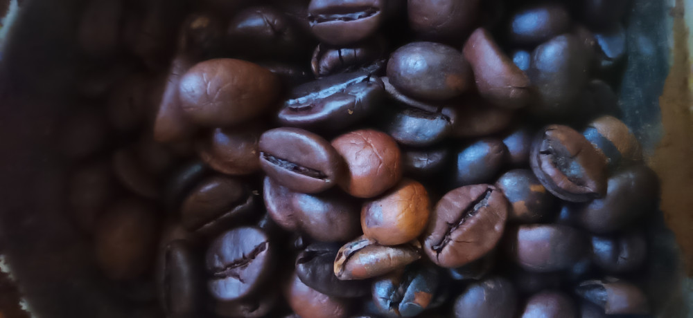 Кофейные зерна мелкие, неоднородные. Запах при варке - дешевого кофе. Не робусты, как пишут комментаторы, а как будто зерен не самого лучшего качества, лежалых, отсыревших и снова подсушенных.