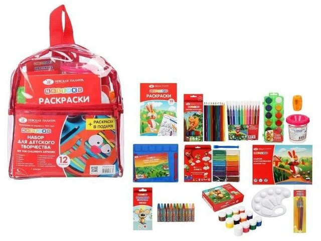 Невская палитра Набор для детского творчестваВ данный момент этот товар отсутствует в продаже. Возможно, у нас найдется аналогичный или похожий товар здесь. Набор включает 12 основных предметов, в том числе краски, карандаши, фломастеры, пластилин, масляную пастель и вспомогательные материалы. Также в набор входит увлекательная раскраска. Упакован в рюкзак на молнии, который удобно носить на спине или в руках, брать с собой на занятия, а также использовать как место хранения материалов для творчества юного художника. |