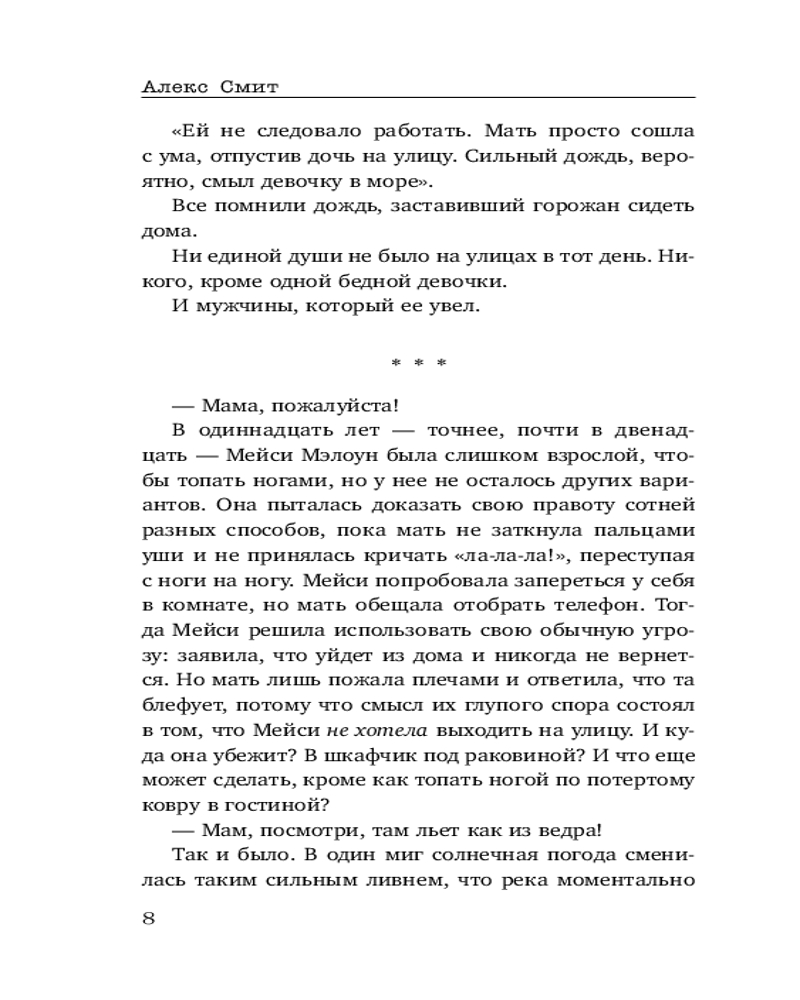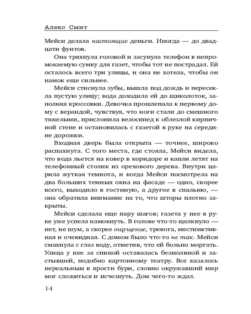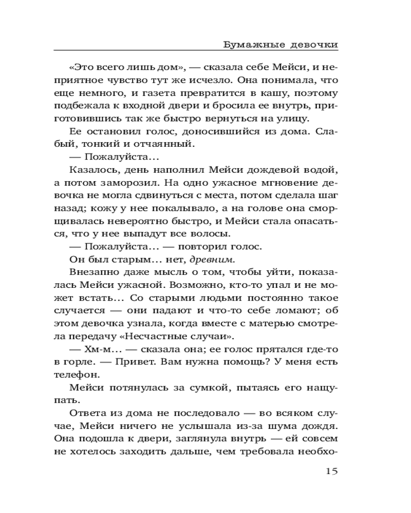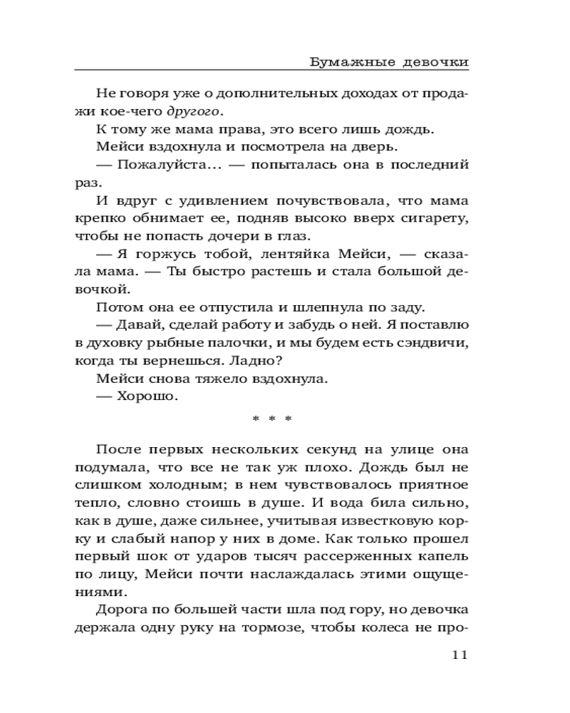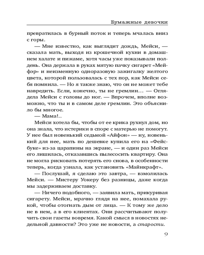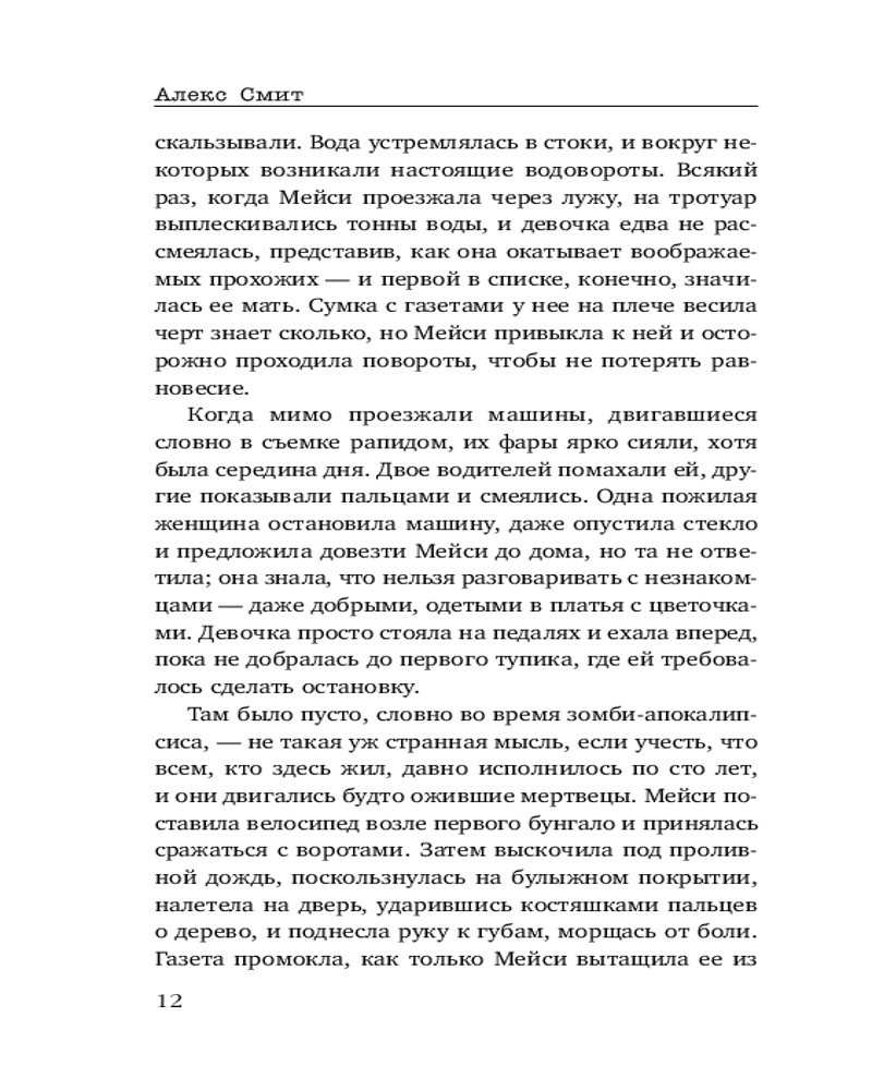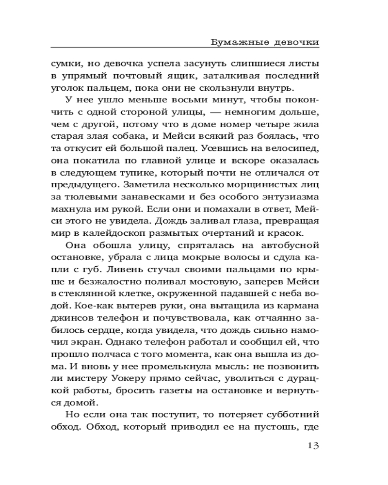 Одиннадцатилетняя Мэйси должна была развозить газеты на своем велике. Лило, конечно, как из ведра, но хозяин платит три фунта в час... хорошие деньги для маленькой девочки. Поэтому Мэйси надела дождевик, взяла сумку с газетами и помчалась сквозь ливень по давно знакомому маршруту.