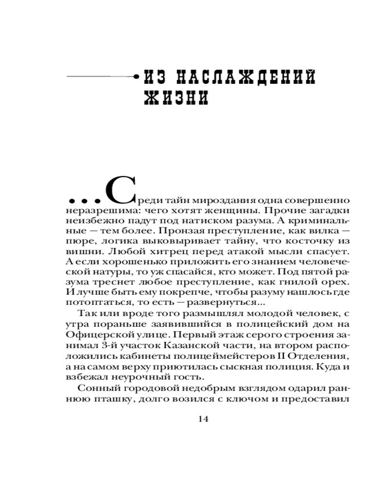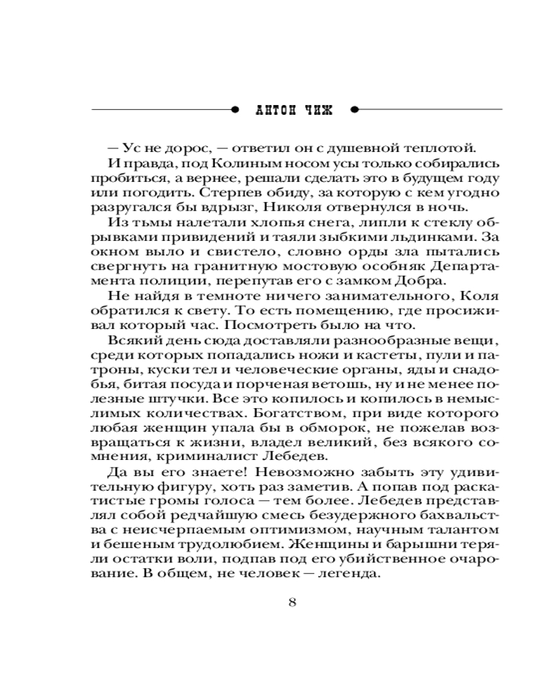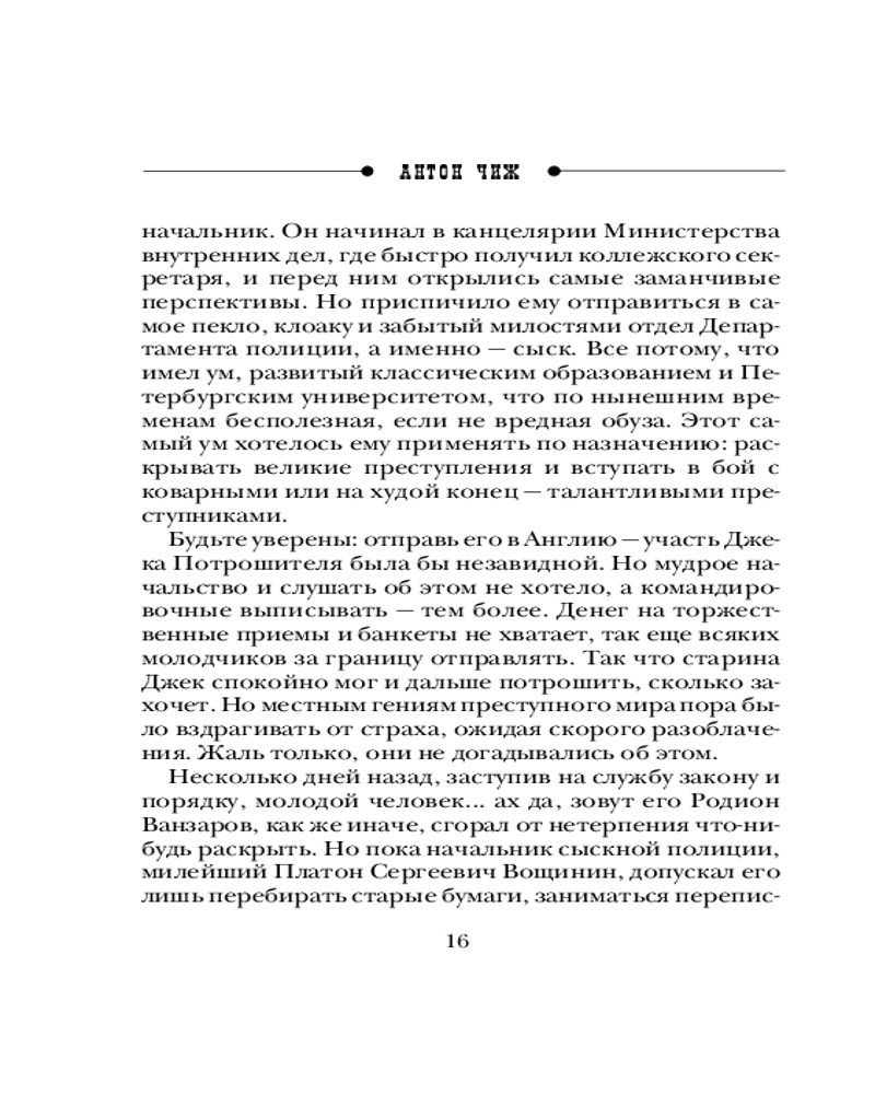 В данный момент этот товар отсутствует в продаже. Возможно, у нас найдется аналогичный или похожий товар здесь. Серия: Исторические детективы Антона Чижа. Родион Ванзаров (новое оформление) 1985 год. Пока искалеченный в погонях за преступниками коллежский секретарь Родион Ванзаров приходит в себя, его напарник и друг криминалист Аполлон Лебедев вспоминает самые «горячие» детективные расследования, которые они провели вместе. Полиция, словно исповедник, становится свидетелем самых страшных человеческих грехов: под личиной тихого обывателя может скрываться чудовище. Вот убийство на фоне противоестественной половой склонности; вот мертвый муж встает из могилы, чтобы отомстить распутной жене-баронессе; а вот пир во время чумы, когда красивейшего мужчину убивают в разгаре празднества...