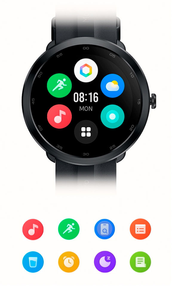 Лучше управляйте своей повседневной жизнью с помощью виджетов! Watch R имеет четыре настраиваемые страницы виджетов, адаптированные к вашим повседневным сценариям, включая основные приложения, спорт, хорошее самочувствие и производительность. Персонализируйте эти виджеты по своему усмотрению, получите более легкий доступ к вашим любимым видам спорта или данным о здоровье, которые вас больше всего волнуют, просто нажав на приложение Maimo Fit!