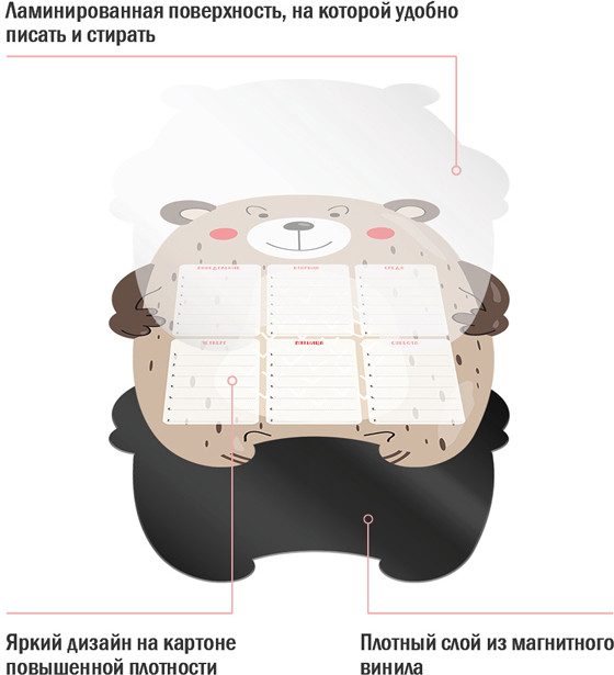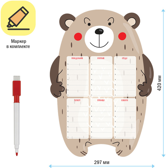 ArtSpace Планер магнитный с маркером «Пиши-Стирай. Bear»-20% +43 магнит обратная сторона большой размер для ребенка планер