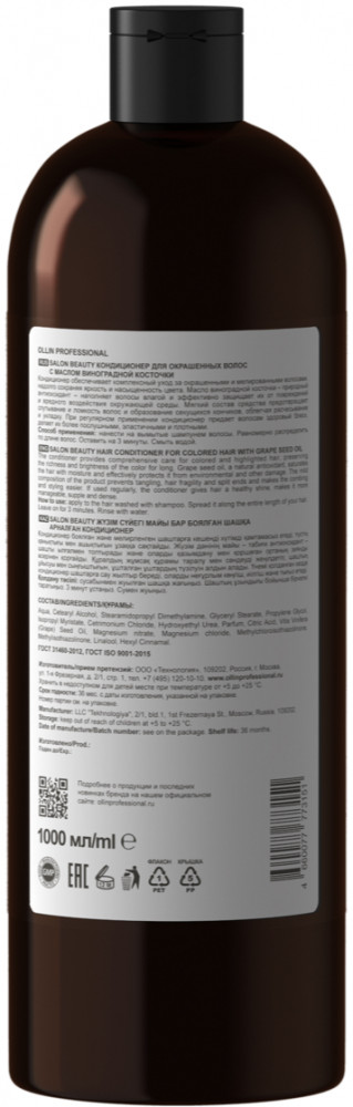 Ollin Professional Кондиционер для окрашенных волос с маслом виноградной косточки-20% +154 шелковистые волосы приятный запах экономный расход держит цвет хорошее увлажнение