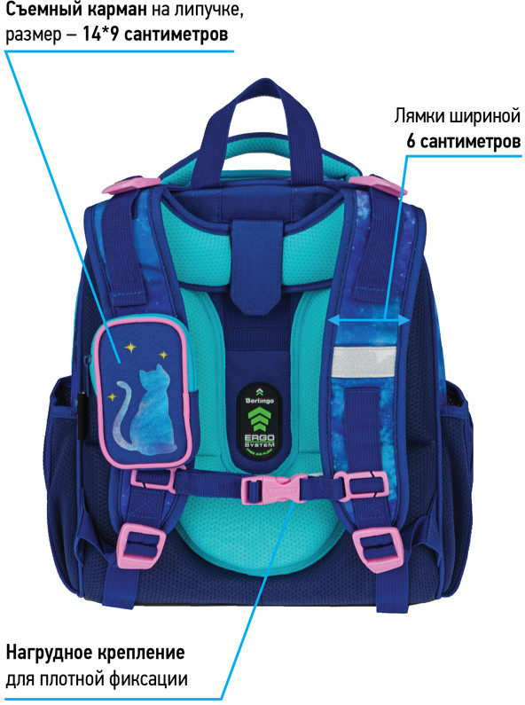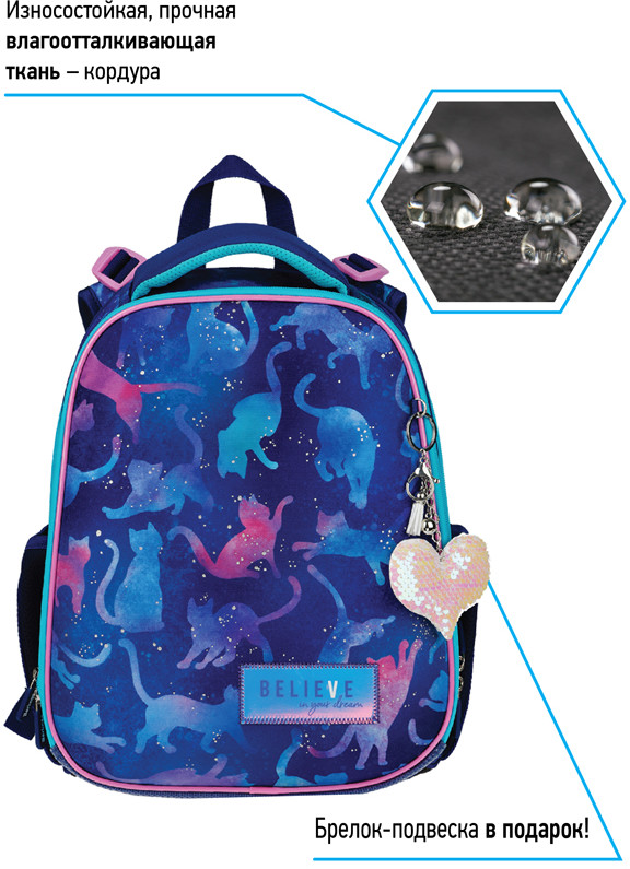 💳 Оплатить за товар можно при получении 🇰🇿 Есть бесплатная доставка по Казахстану 🎁 Копите бонусы с каждой покупки Серия: Galactic cats Эргономичный ранец для детей младшего и среднего школьного возраста выполнен из экологичного ЭВА-материала с покрытием из высокопрочной нейлоновой ткани кордура. За счет особой структуры нити в ткани достигнута четырёхкратная стойкость к истиранию по сравнению с простым нейлоном. Кордура обладает водоотталкивающими свойствами и легко чистится. Благодаря анатомической вентилируемой спинке, регулируемым по длине и высоте лямкам, а также нагрудному креплению ранец плотно фиксируется на спине ребенка, что помогает равномерно распределить нагрузку и сохранить правильную осанку. |