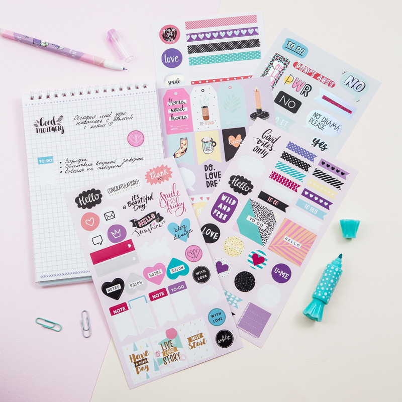 Наборы бумажных наклеек Meshu идеально подходят для оформления записей, открыток, поделок, а также украшения канцтоваров, телефонов, ноутбуков, предметов интерьера. Набор состоит из 5 листов. Яркие современные дизайны сделают творческий процесс увлекательным и подарят отличное настроение. |