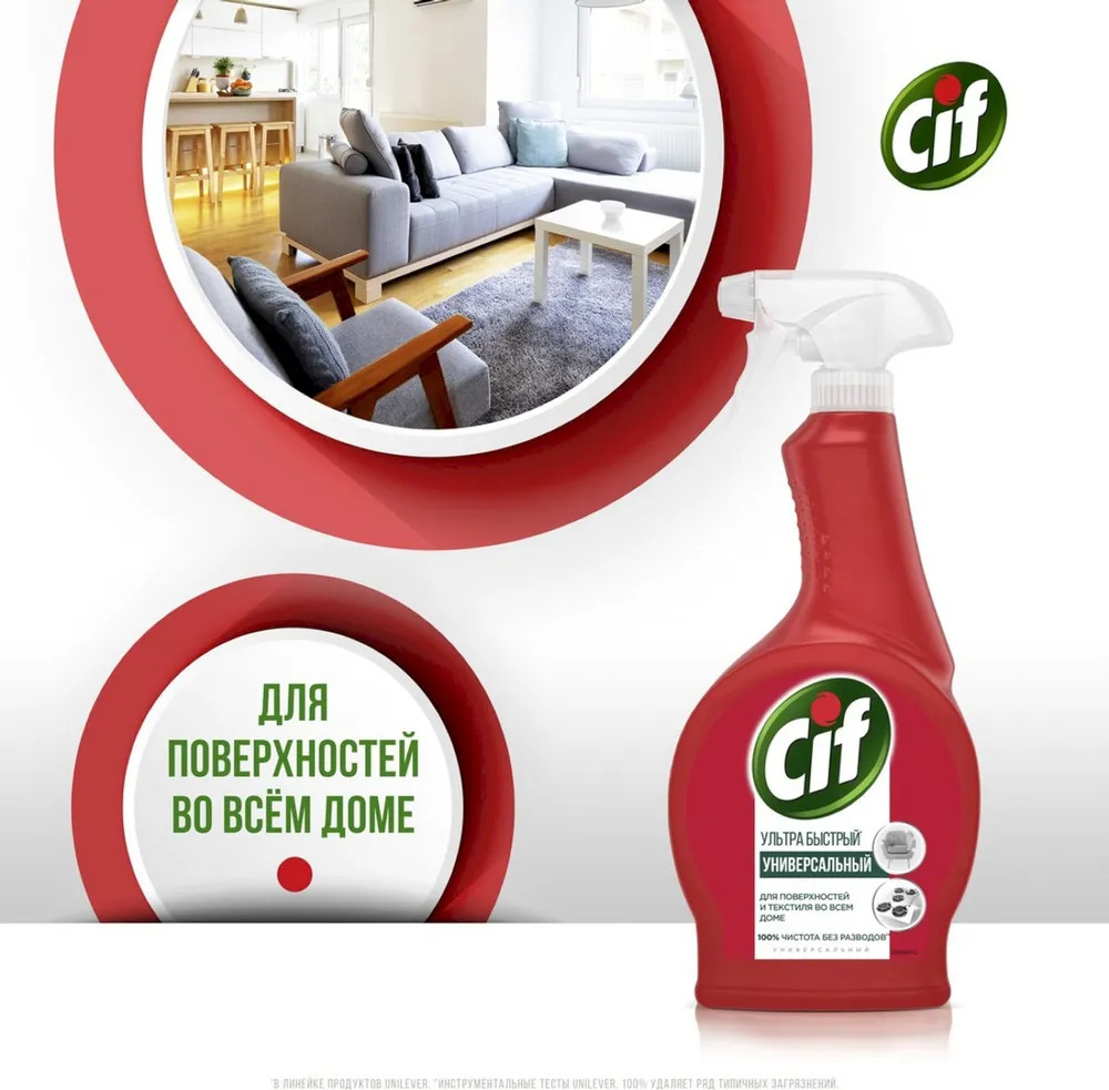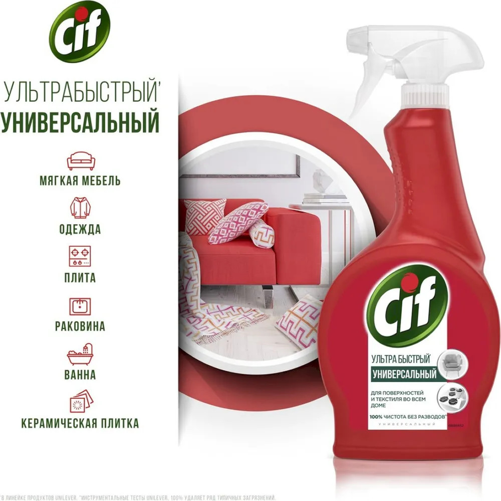 • для ковра и дивана: распылите спрей Cif на поверхность, почистите её с помощью тряпки/губки/щётки. Промойте поверхность хорошо смоченной в воде чистой тряпкой.