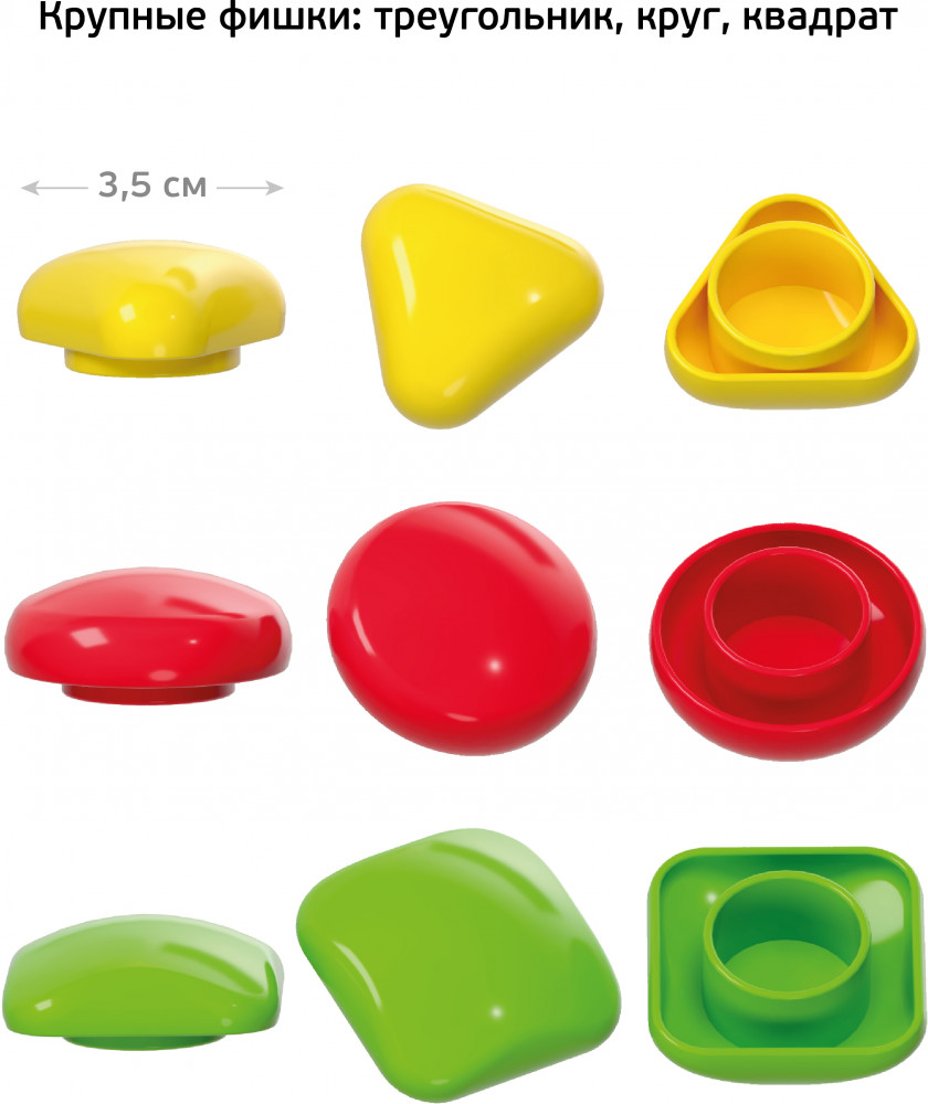 💳 Оплатить за товар можно при получении 🇰🇿 Есть бесплатная доставка по Казахстану от 1 дня 🎁 Копите бонусы с каждой покупки Мозаика на 27 фишек — идеальный выбор для развития малышей! Набор позволяет собрать 8 ярких картинок с добрыми сюжетами и приятными персонажами. Составьте картинки с яблочком, машинкой, бабочкой, божьей коровкой, самолётом, рыбкой, грушей или цветочком! Перед началом игры необходимо вставить картинку, которую хочет собрать малыш, в игровую плату. Разместите плату перед ребёнком и разложите вокруг фишки разных цветов и форм. Малышу предстоит разобраться, какая фишка подойдёт каждой ячейке. На картинках оставлены подсказки в виде цветных силуэтов кружочков, квадратиков и треугольников. Фишки имеют крупный размер и сглаженную форму, благодаря чему игра будет безопасной для ребёнка. Занятия с мозаикой для самых маленьких тренируют гибкость пальчиков, щипковый захват, логическое мышление и учат различать оттенки цветов и формы объектов. |