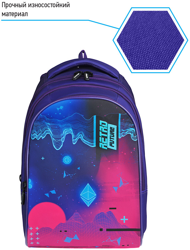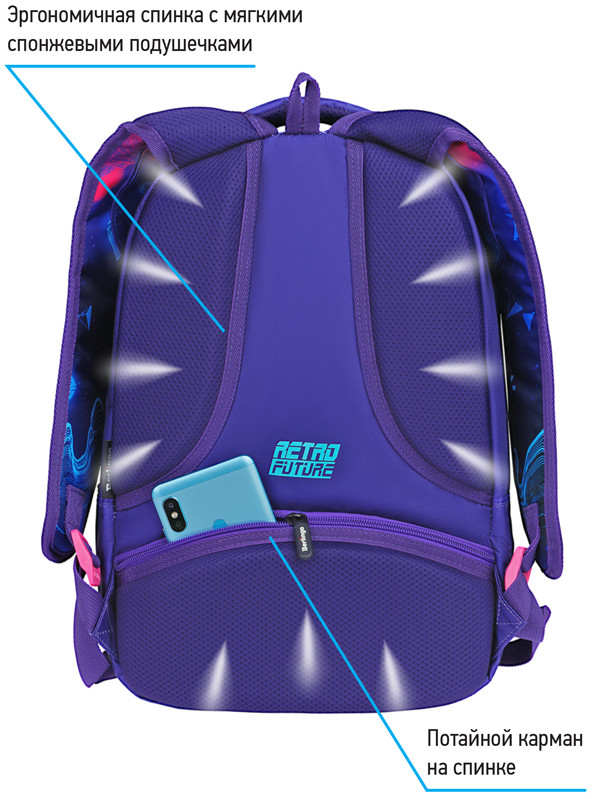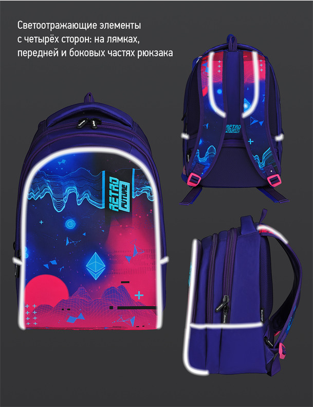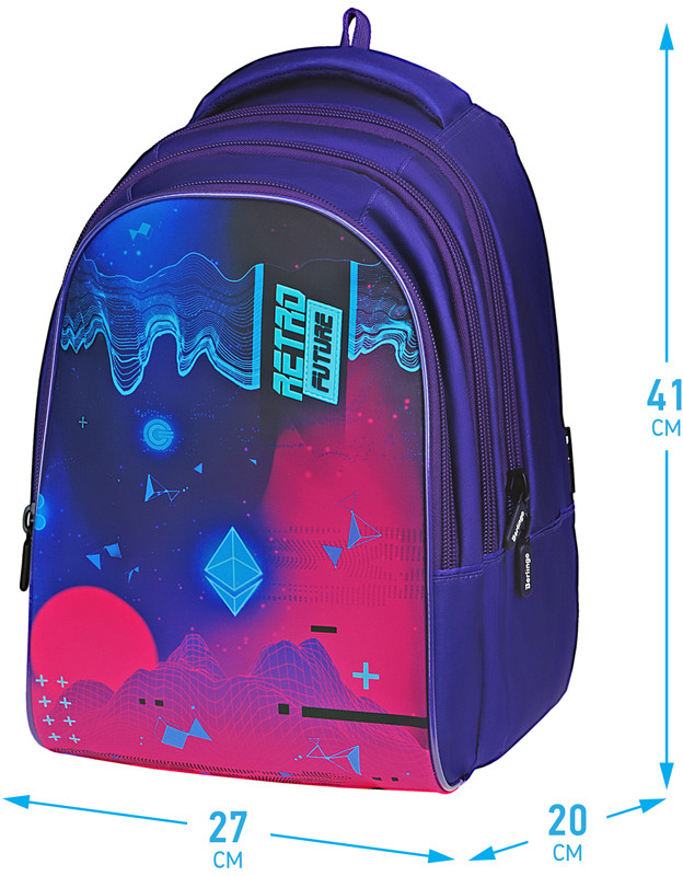 Berlingo Рюкзак «inStyle»В данный момент этот товар отсутствует в продаже. Возможно, у нас найдется аналогичный или похожий товар здесь. Серия: Retro Future Эргономичный рюкзак школьный предназначен для детей среднего и старшего школьного возраста. В модели предусмотрены 3 отделения, есть потайной карман на молнии на спинке. Внутри имеется органайзер, 2 открытых кармана, 1 карман на резинке и карман на молнии. Рюкзак выполнен из прочного нейлона, благодаря чему изделия обладают повышенной износостойкостью. Объём — 22 литра. Эргономичная вентилируемая спинка, широкие регулируемые лямки помогают равномерному распределению нагрузки на позвоночник, а усиленное дно, плотная ручка и петля для подвешивания делают рюкзак максимально удобным. Внутренняя подкладка плотная и устойчивая к разрывам. Световозвращающие элементы обеспечивают безопасность в темное время суток. |
