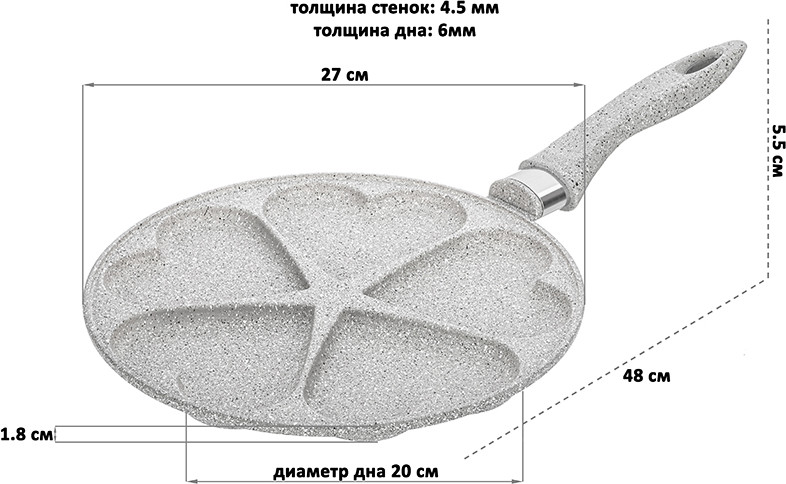 Классная сковорода, ничего не прилипает, оладьи получается в форме сердца, не маленькие, а в самый раз. Рекомендую к покупке.