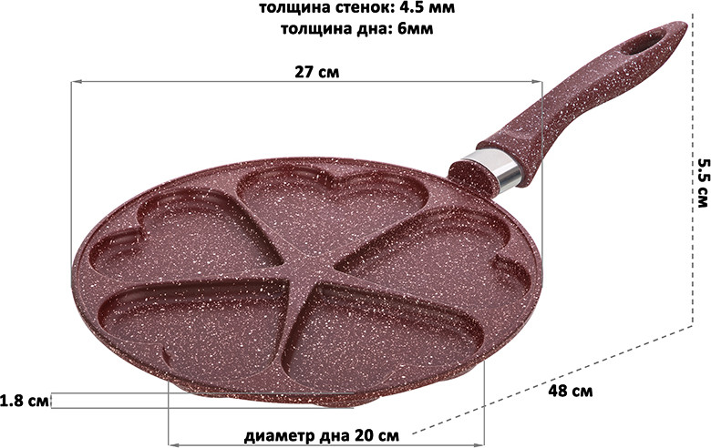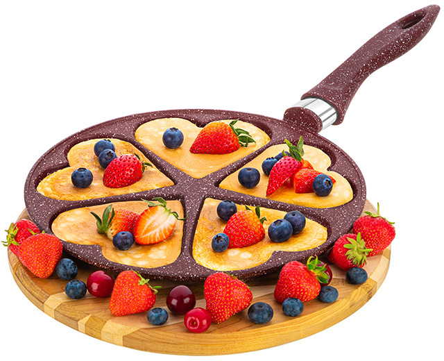 Классная сковорода, ничего не прилипает, оладьи получается в форме сердца, не маленькие, а в самый раз. Рекомендую к покупке.