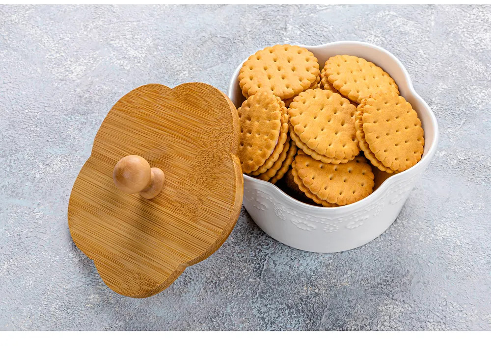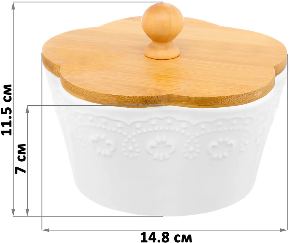 Elan Gallery Банка для печенья «Цветок»удобная форма красивый дизайн неплотная крышка В данный момент этот товар отсутствует в продаже. Возможно, у нас найдется аналогичный или похожий товар здесь. Серия: Белый узор Банка для печенья серии «Белый узор» с бамбуковой крышкой подойдет для хранения печенья, конфет, пряников, разнообразных угощений и продуктов. Баночка выполнена из высококачественного белого фарфора в форме цветка и украшена декоративными рельефными узорами. Фарфоровый контейнер отличается от керамики повышенной плотностью. Он не впитывает цвет еды и не деформируется от влаги, чему может быть подвержена керамическая посуда. |