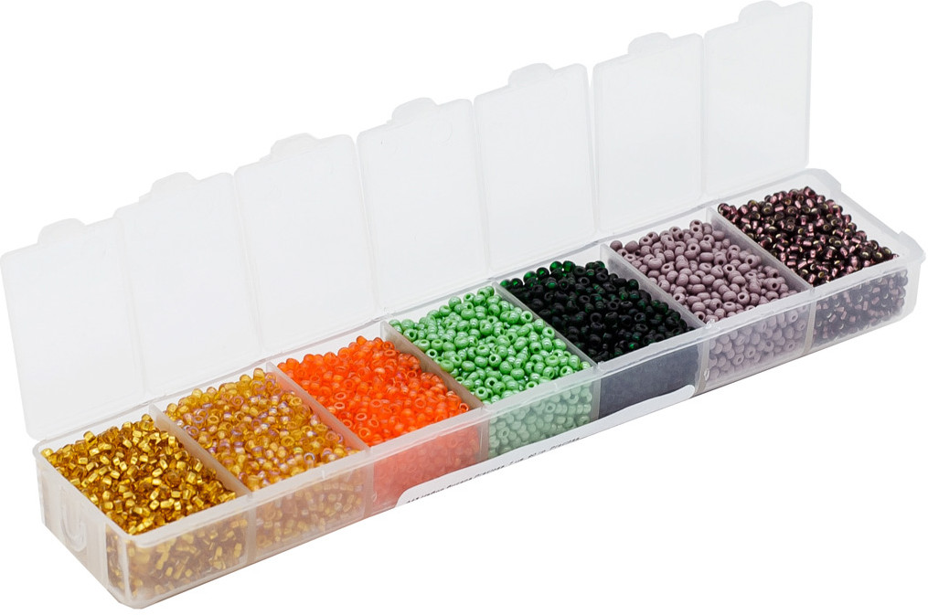 Бисер «Preciosa» разных цветов — материал для ваших творческих проектов. Бисер аккуратно откалиброванный, однородный по размеру и без бракованных элементов. В наборе бисер с различными эффектами — прозрачный и непрозрачный, с покрытием, радужный, с жемчужным эффектом. Подходит и для вышивки, и для плетения украшений, фигурок, других поделок.